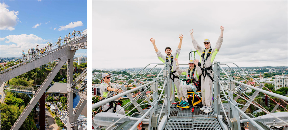 布里斯班的故事桥攀登冒险体验是全球首个欢迎轮椅使用者及行动不便人士参与的桥梁攀登项目。借助专门定制的高科技电动爬梯轮椅,参与者能够以安全、舒适的方式完成攀登。